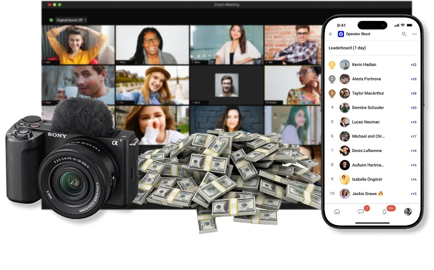 Operator Skool runs exclusive monthly prizes and giveaways for the most active members. These include cash rewards, tech gear, business tools, and free coaching calls - all designed to celebrate your progress, keep you motivated and help you acheive your goals faster. The more you engage, complete modules, and level up, the more entries you earn. Winners are announced each month inside the Operator Skool community.